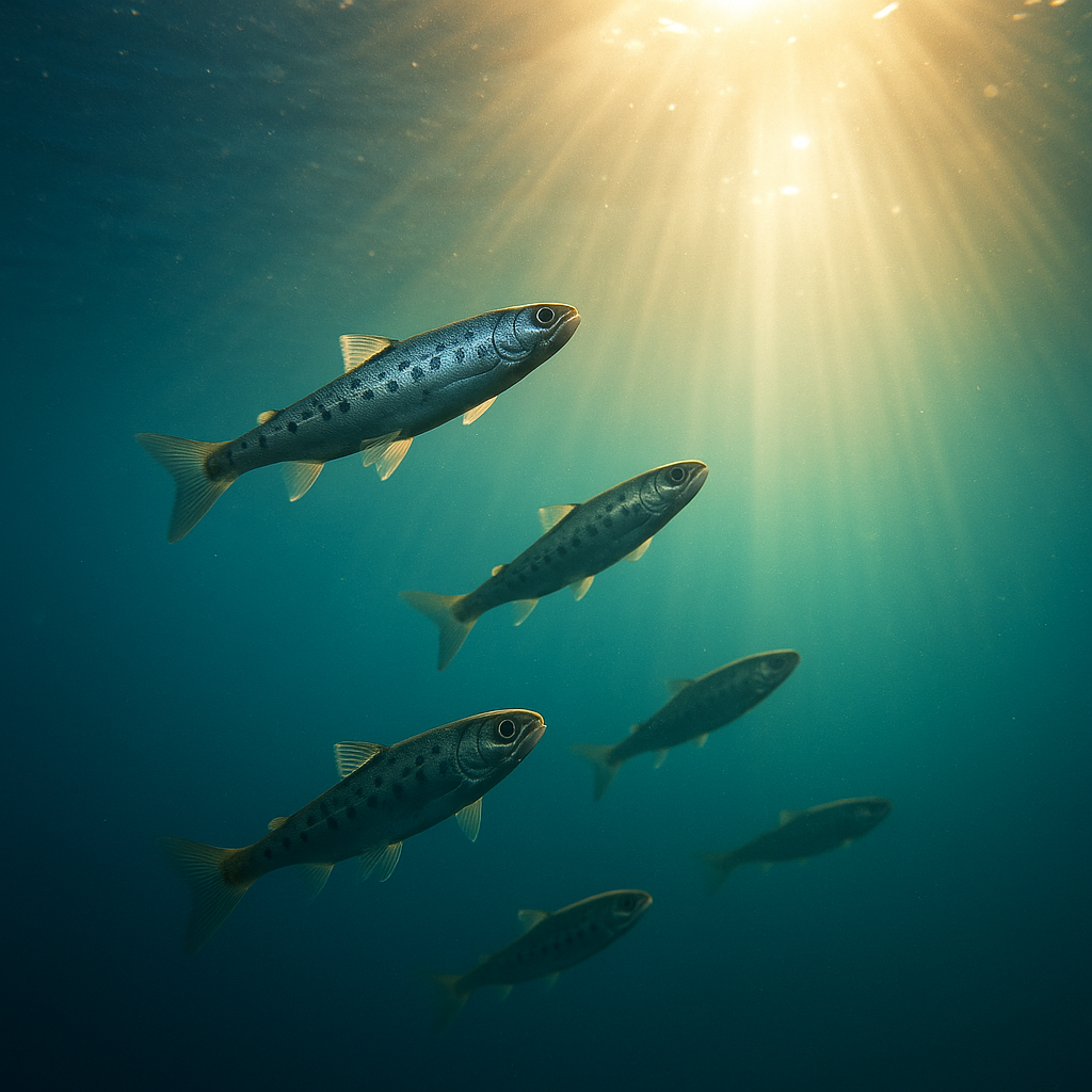 夕暮れの海に、光が落ちる。 波の上で、稚魚たちの銀色の背がきらめく。 その小さな光のひとつひとつが、未来の証。 どんな海になっても、命はそこに息づく。 変わることを恐れず、ただ流れを信じて。