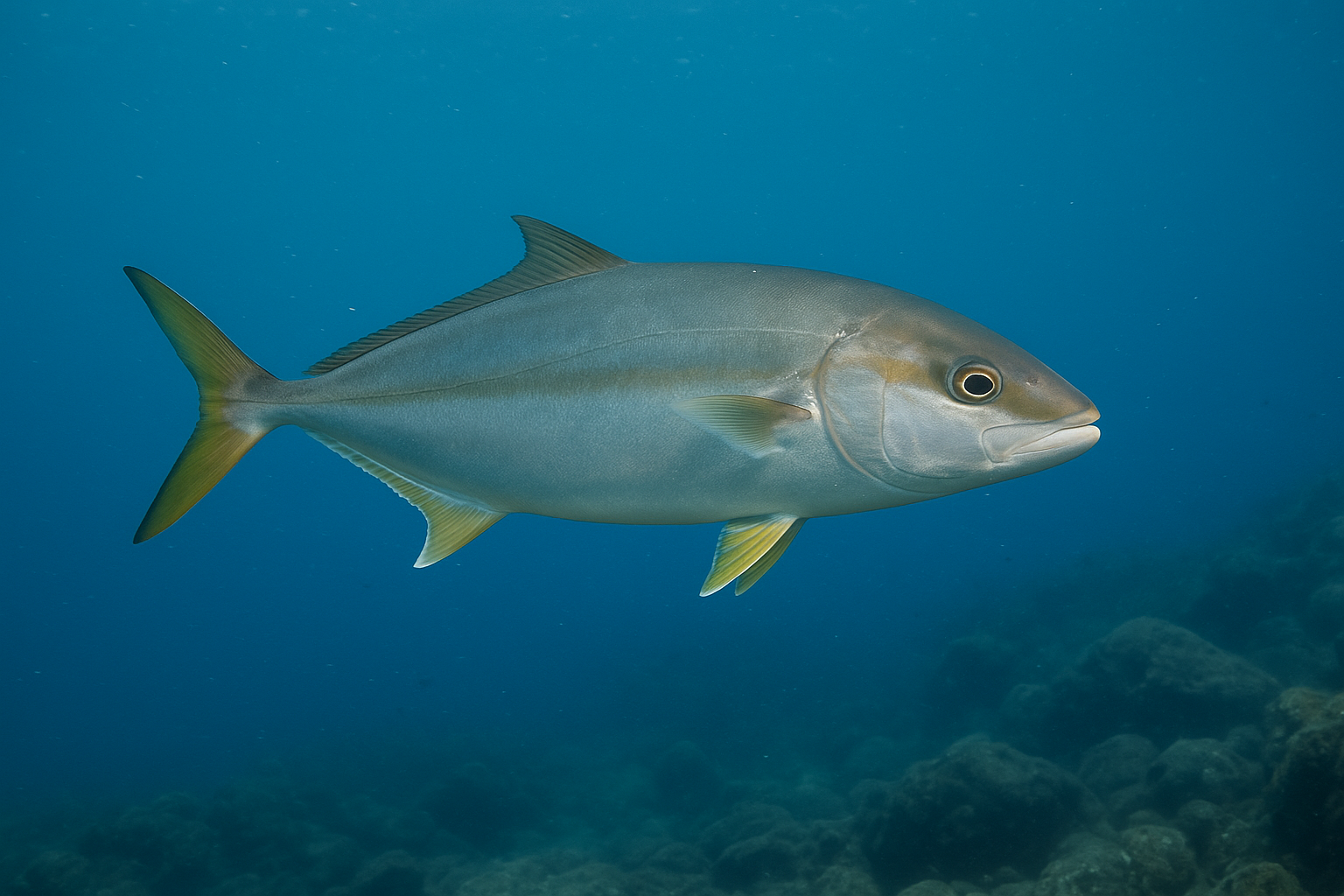 カンパチは深みを好み、静かな潮の中を漂う。