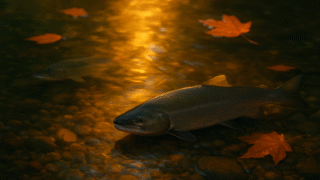サケシリーズ 🐟鮭17:記憶と鮭 ― 水に刻まれた命 ― 川は忘れない。流れの中に、命と記憶が溶けている。鮭が帰ることで、水と人と自然の記憶が再び息づく。“記憶を泳ぐ魚”としての鮭の物語。 2025.10.21 サケシリーズ