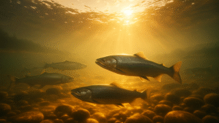 サケシリーズ 🐟鮭12:サツキマス ― 夏の川に帰る影 ― 初夏、川が濃くなる季節に帰るサツキマス。銀化した体で境を渡り、山里の季節とともに遡上する。水の匂いと影の濃さが深まる、成熟の物語。 2025.10.21 サケシリーズ