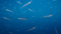 透明な水の中に、ほとんど見えないほど小さな影が漂っている。