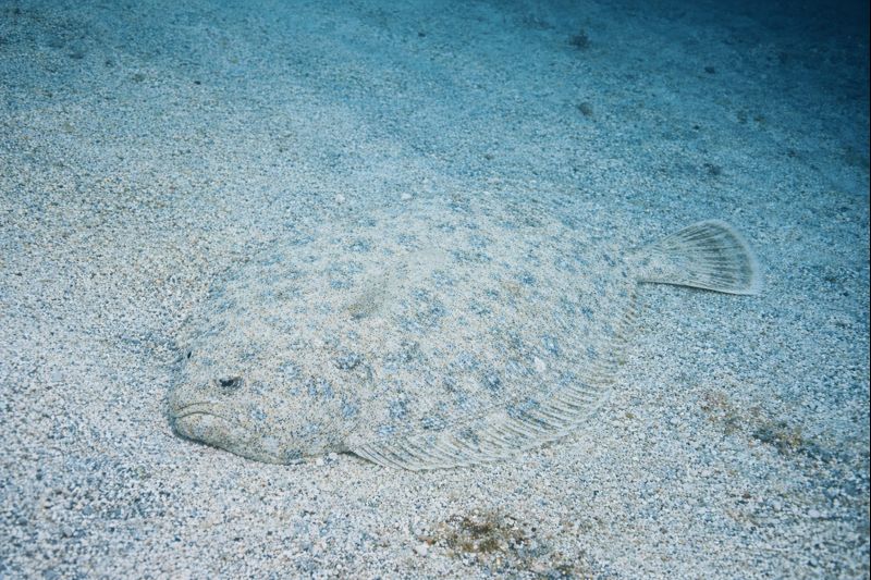 ヒラメの多くの時間は、砂底で静止することに費やされる。