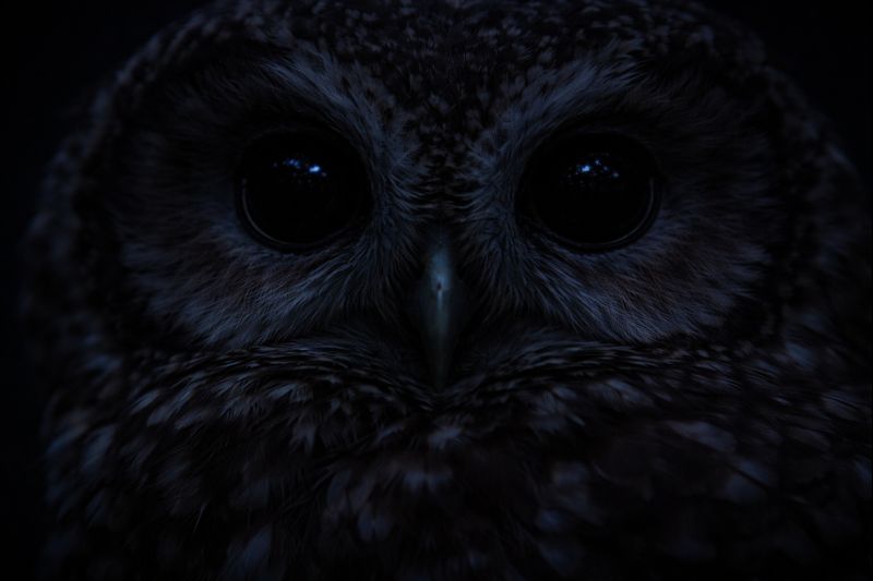 フクロウは、見えない夜を、聞きながら確かめている。
