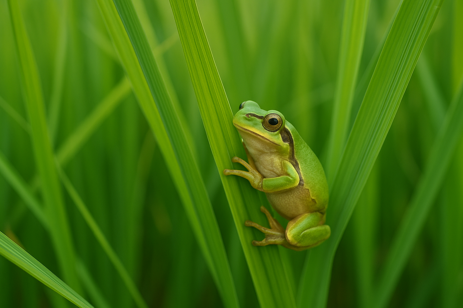 - 🐸カエル9:トノサマガエル ― 田んぼを跳ぶ緑の影 ―