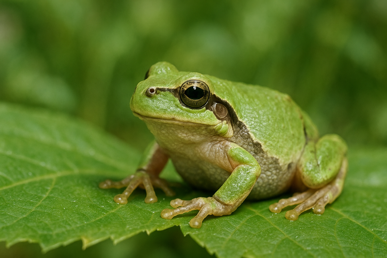 ― 雨の前にふと聞こえてくる澄んだ声。葉の上でじっと空気の湿りを感じ取り、雨粒が落ちてくると跳びはねる小さな緑の影。アマガエル類は、日本の雨季とともに暮らす象徴的なカエルで、身軽な体と吸盤のついた指先で草木の上を自在に歩く。