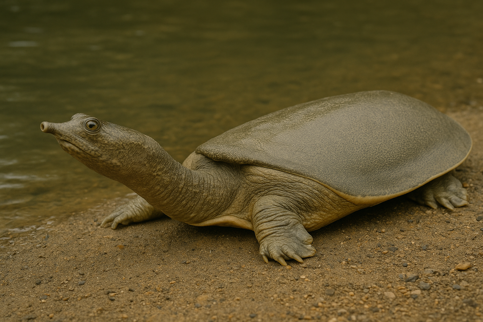 - 🟫 1. 特徴 ― 柔らかい甲羅と長い首が生んだ独特の姿