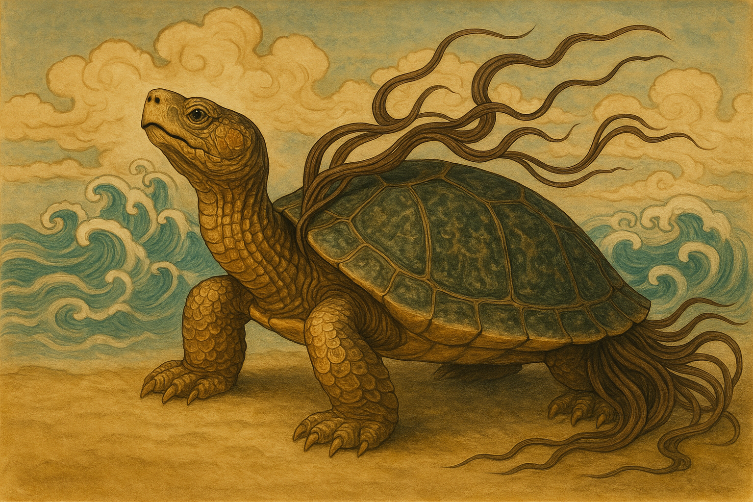 遠い土地の物語にも、静かに歩く甲羅の影がそっと息づいている。
