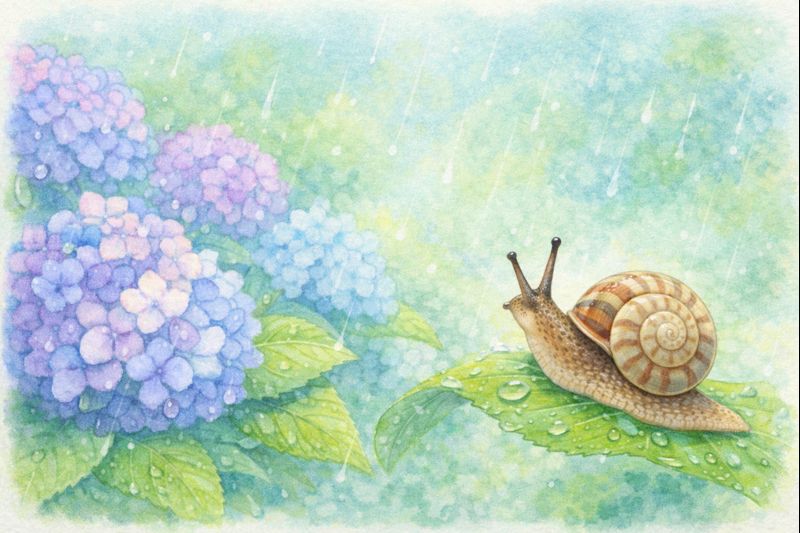 カタツムリは、雨の音と一緒に、暮らしの記憶に残っている。