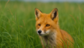 静かな草地で、風が止まる瞬間がある。その一瞬、キツネは耳を立て、周囲の気配をすべて拾い上げる。次の瞬間、弧を描くように跳び上がり、雪や草の下に前脚が吸い込まれる。獲物の姿は見えなくても、そこに「いる」と確信しての動き。キツネの狩りは、目ではなく“音と気配”を読む高度な技術で成り立っている。