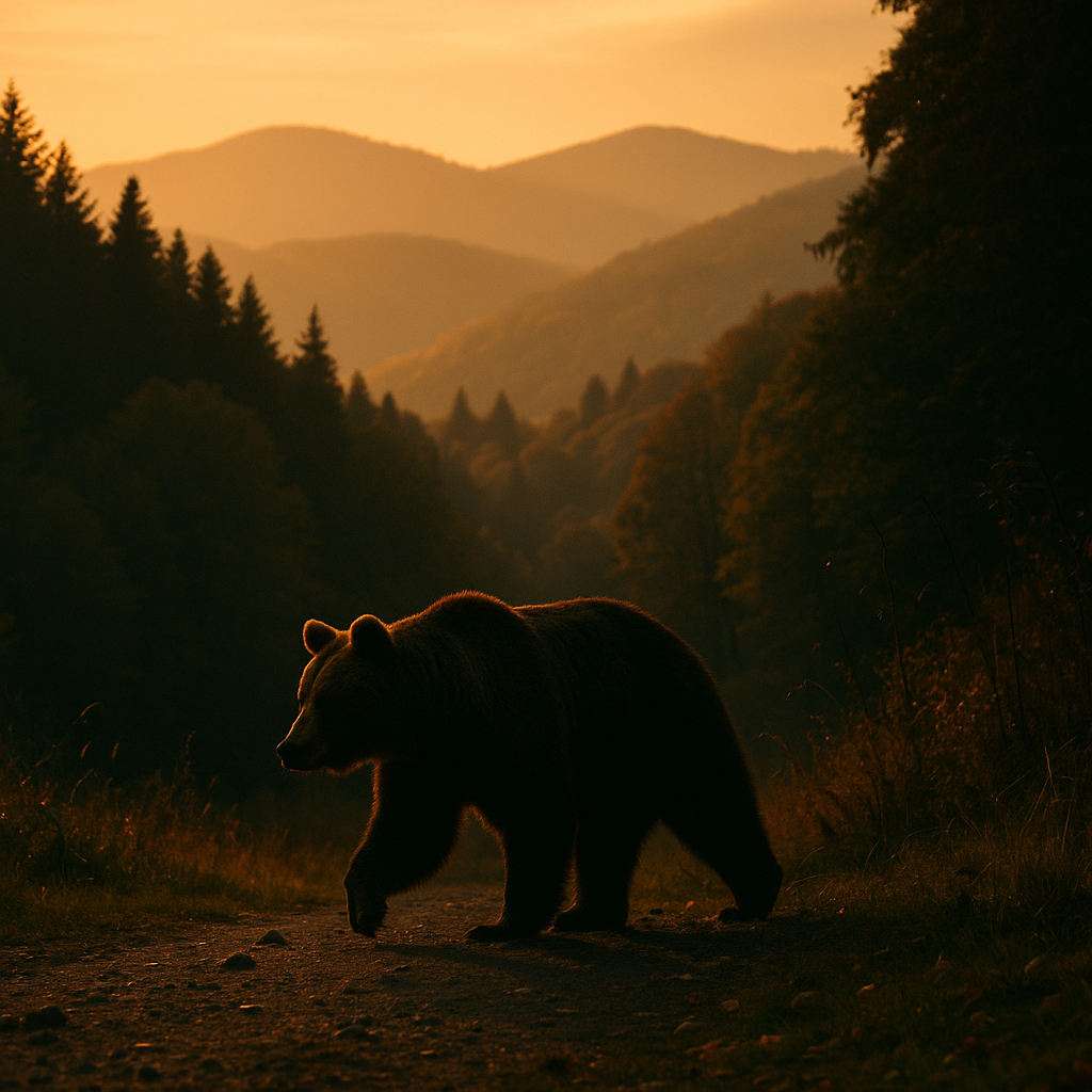 その中を、一頭の熊が歩いていく。