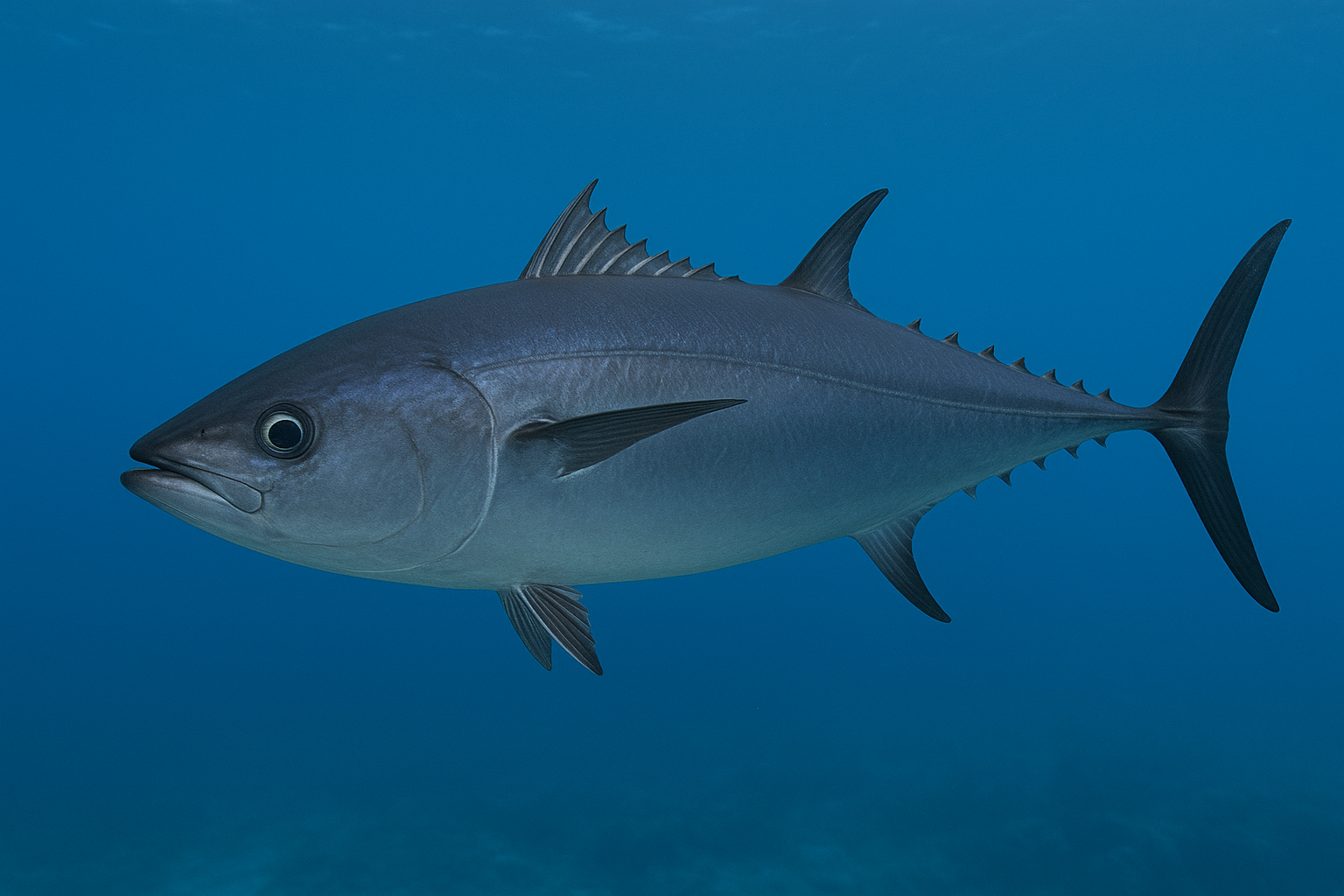 コシナガマグロ(小品鮪) ― マグロ類の中でも小型で温暖な外洋をめぐる種。体はずんぐりとしながらも敏捷で、群れを成して海の表層を旅する“静かな回遊者”。