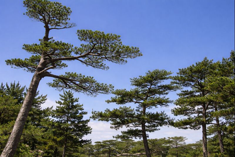 リュウキュウマツは、日本のマツの中でも特に南に分布する種だ。温暖で雨の多い環境、そして強風にさらされる条件の中で、独自の形をつくってきた。