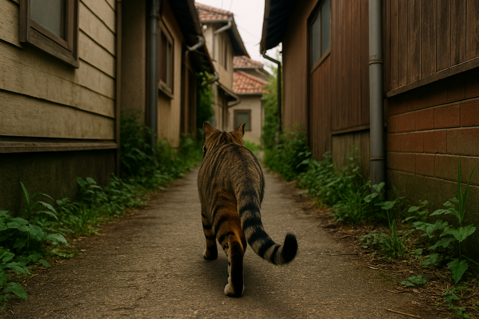 都市には、道路・塀・配管の隙間・植え込みなど、 小動物が移動できる細い動線が無数にある。 ネコはその“細い道”を自由に歩き、 都市空間の境界をつないでいく存在になっている。