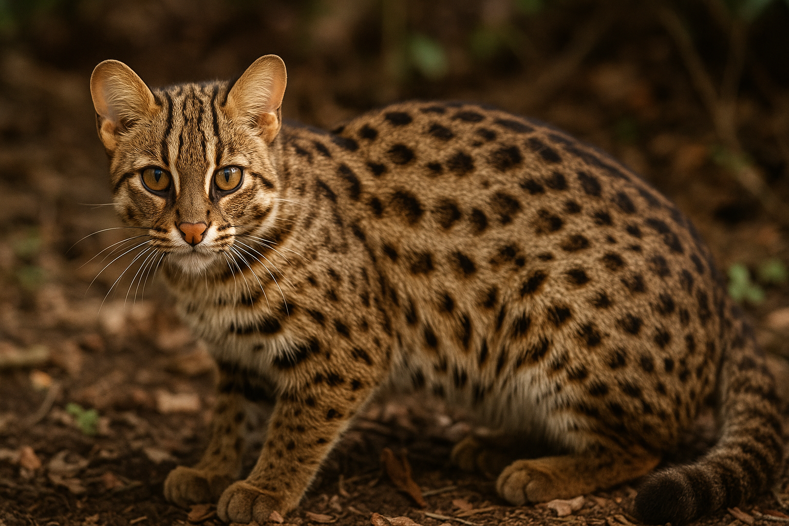 森の縁に細い影が走り、葉の揺れだけがその存在を知らせる。 ベンガルヤマネコは、アジアに広く暮らす野生の小型ネコで、私たちが見る家猫よりひとまわり小さく、動きが鋭い。