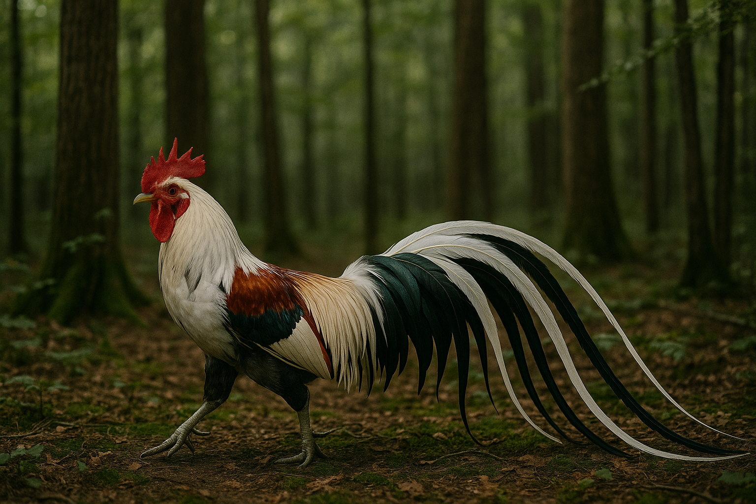 ― 長く伸びる羽が、風に揺れながら静かに垂れる。尾長鶏の姿には、ただの“美しい鶏”以上の、時間そのものが宿っているように見える。育てられ、守られ、受け継がれてきた“羽の文化”。その極致がこの鳥に集まっている ―