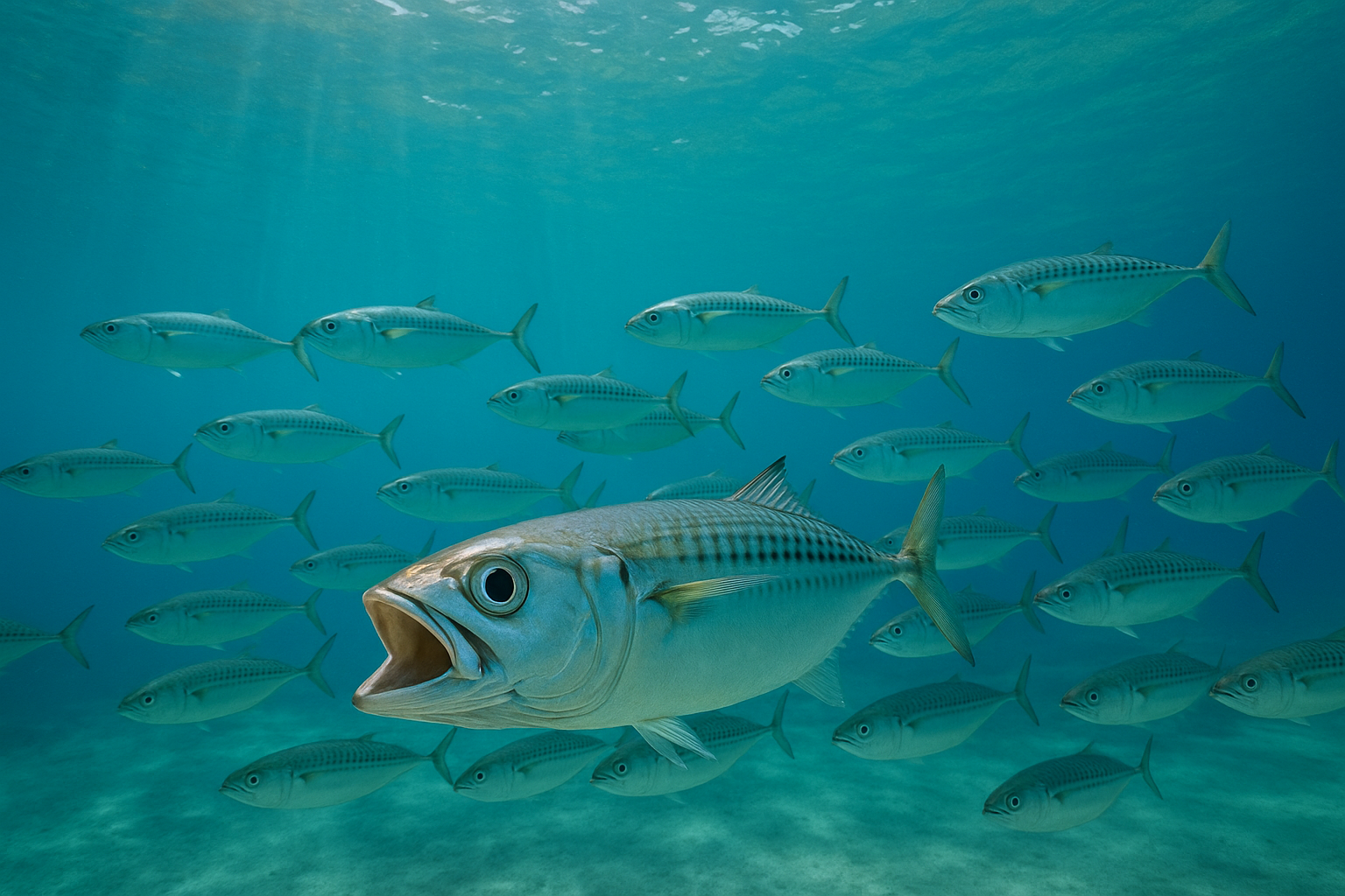 熱帯の海で暮らす彼らは、青い潮の記憶を引き継ぐ“南のサバ”たちだ。