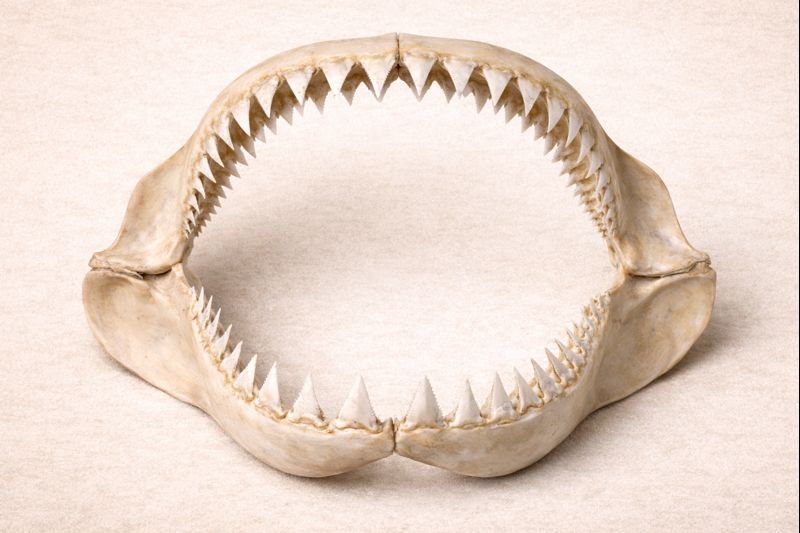 サメの骨格は、ほとんどが軟骨でできている。硬骨魚のような重い骨を持たず、軽く、しなやかで、衝撃を逃がしやすい。
