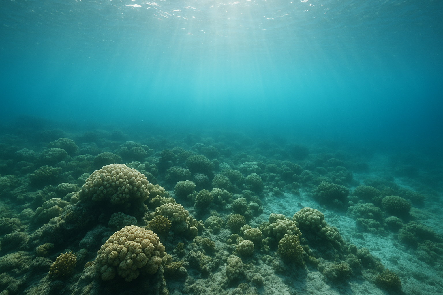 熱帯の陽射しの下で広がる白い海底は、美しくも痛々しい。