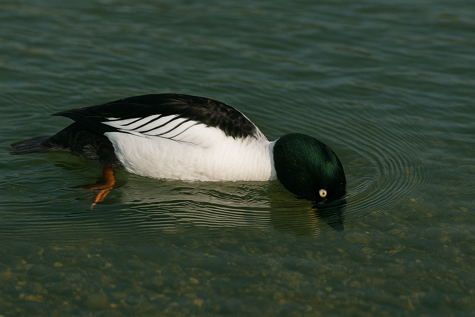 潜水ガモたちは、空を飛ぶ鳥でありながら、水の中でも自在に動く。 彼らにとって「潜る」とは、生きるための行為であり、食べることそのもの。 冬の湖や湾の底、そこには彼らだけの食卓が広がっている。