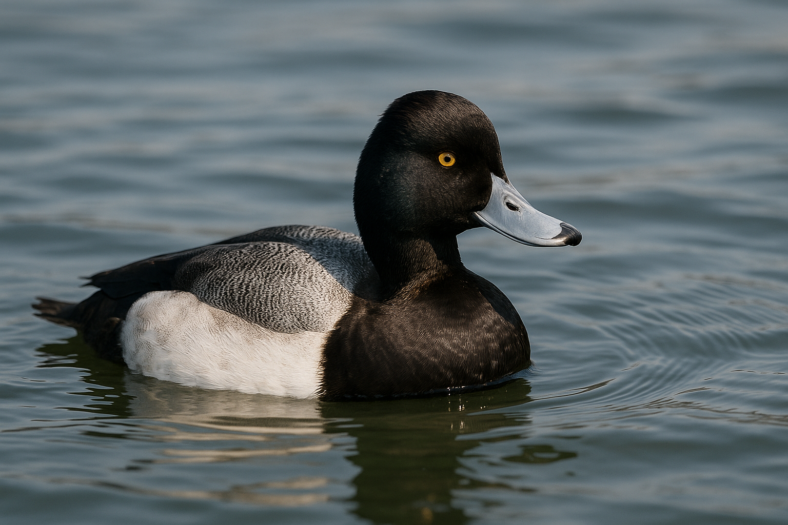 スズガモは、北の海原からやってくる冬の旅人。 寒気が降りる頃、オホーツク海やベーリング海沿岸から日本の湾や湖に現れる。 外洋を渡りながら、潮流と風を読むように動く。 その群れの波打つリズムは、冬の海の象徴でもある。