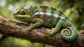 カメレオン類の特徴と生態を解説。体色変化、独立した目、伸びる舌が生んだ独自の捕食戦略と樹上生活を描く。