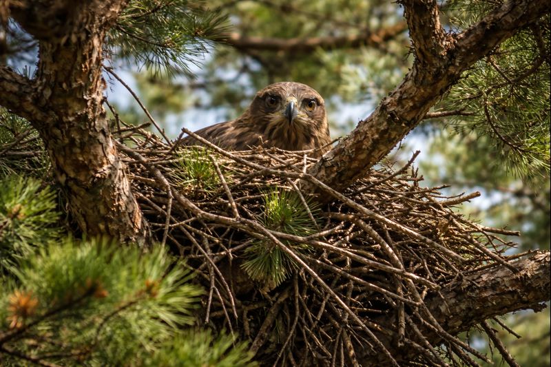 巣は隠すものではない。見渡せること、逃げ道があることが、タカにとっての安全になる。