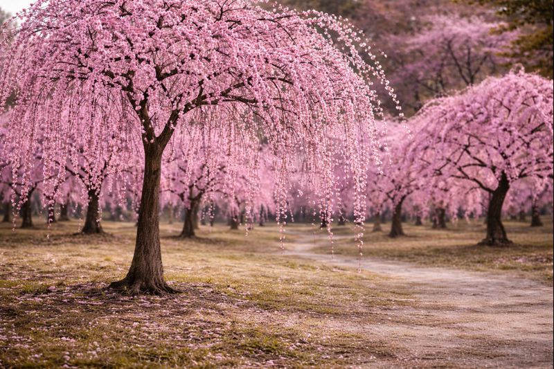 - 特徴:枝の垂下、花弁の多さ、動きのある樹形