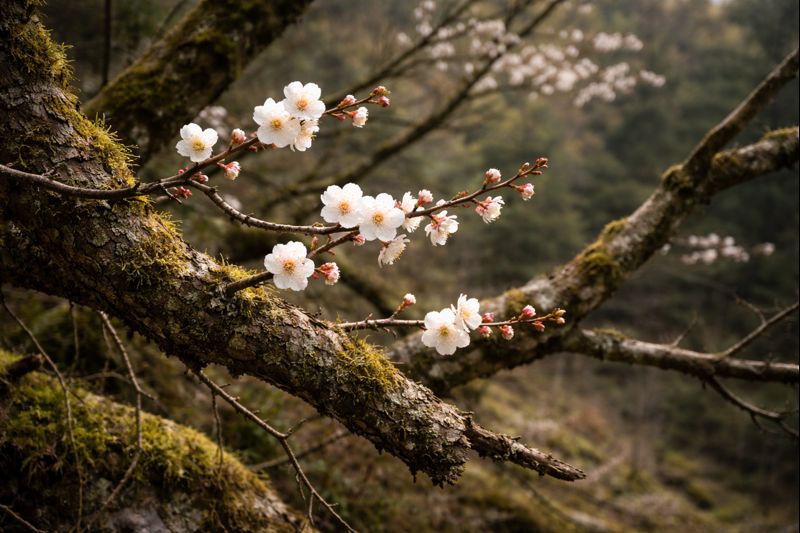 現在見られる多様なウメ品種は、突然生まれたわけではない。野生的な系統や、原種に近い性質をもつウメが、長い時間をかけて人の暮らしに近づいてきた結果だ。