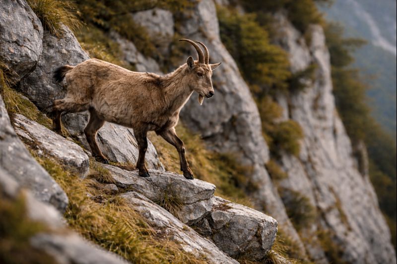岩だらけの斜面に、静かに立つ影がある。滑りやすい崖、乾いた風、草の乏しい土地。人が避ける場所に、ヤギは迷いなく足を置く。