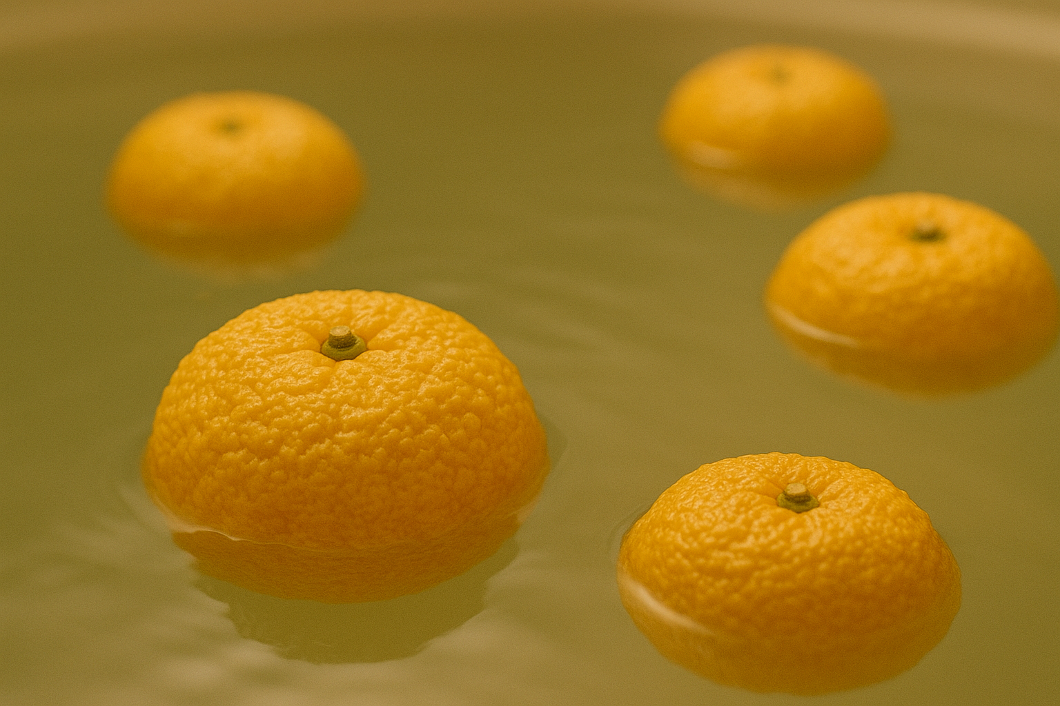 湯の面に、黄金の果実が浮かぶ。 蒸気にのって、香りが静かに立ちのぼる。 冷たい夜に、香りだけが春を思わせる。 そのひととき、人は季節をわすれ、 香りの中で、少しだけやわらかくなる。